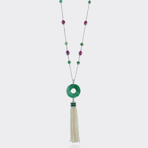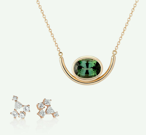 Jiwon received a unique pendant in 18k yellow gold from her aunt that featured two pear-shaped stones -- one in tourmaline and one in aquamarine...