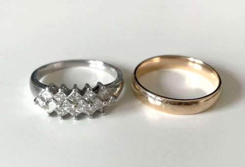Catharine has been holding on to these two 14k white gold diamond rings for many years.