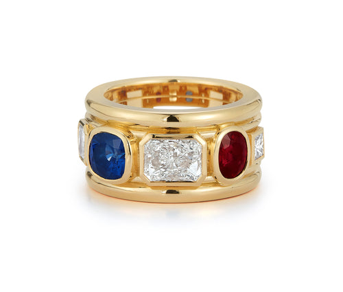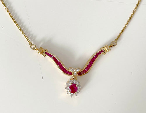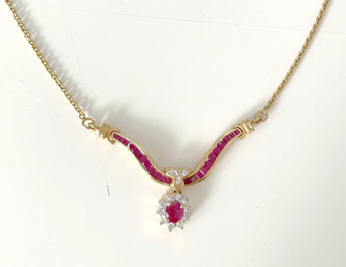 Daphne came to us with a jewelry set from her mother with three different pieces featuring ruby and sapphire stones...